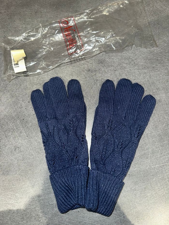 Gants - Neufs avec étiquette - Bleu marine - Maille ajourée sur le dessus - Claire Neuville - Ultra doux et chaud - Taille unique, ok pour du M - Vintage, années 80’