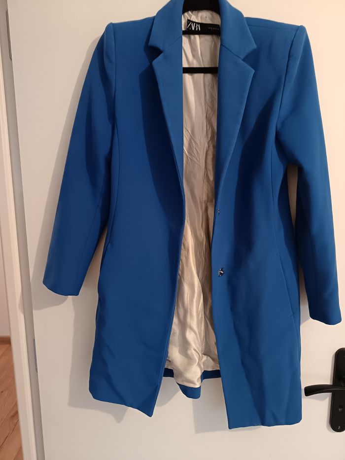 ℹ️ Voici quelques informations 🎀: 🛍️Manteau léger. Blazer épais long. Couleur bleu électrique. Avec des épaulettes. 🛍️De la marque Zara . 🛍️Taille M/38. 🛍️Très bon état. ⚠️Un déchirure à l'intérieur de la doublure qui ne se voit plus à été recousu . 💮Tout article sera lavé avant envoi 💮 ▪️Pour faciliter vos recherches, voici le lien direct des vêtements en taille M/38 de mon dressing: 🌺#pandora_vêtements_taille38