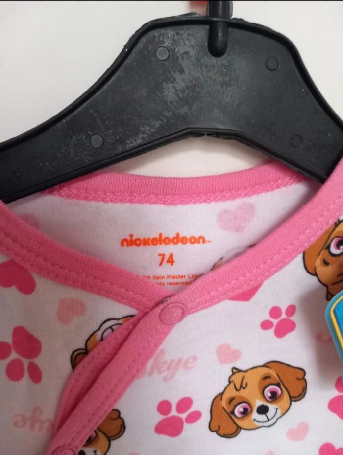 Taille : 74 (6–9 mois) État : Neuf avec étiquette Adorable pyjama à l’effigie de Stella avec motifs pattes et petits cœurs. Ouverture pratique sur le devant pour faciliter l’habillage. Matière douce et confortable pour bébé. Maison non-fumeur, sans animaux. #pyjama #pyjamabébé #patpatrouille #skye #bébéfille #taille74 #neuf #cadeaunaissance #vêtementbébé #9moisfillefamilly2017