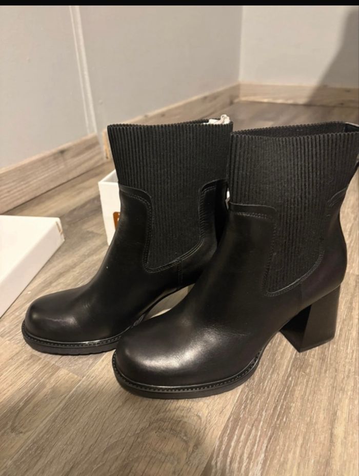 Bottines à talon cuir noir