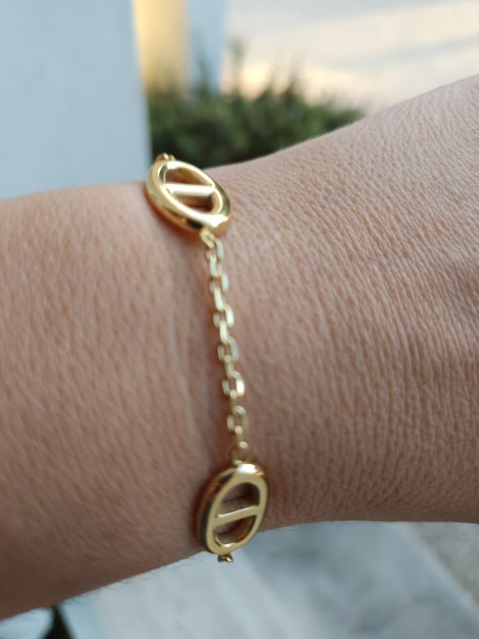 Bracelet nez de cochon acier inoxydable revêtement plaqué or 16 carats fermoir en T