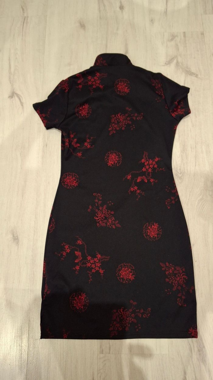 Robe tunique Pimkie Noir à fleurs rouges Taille S/34 sans étiquette Tissu extensible Longueur 84cm Très bon état Effet chic, parfait avec un collant ou leggings noir Je vide mes placards réductions si plusieurs achats