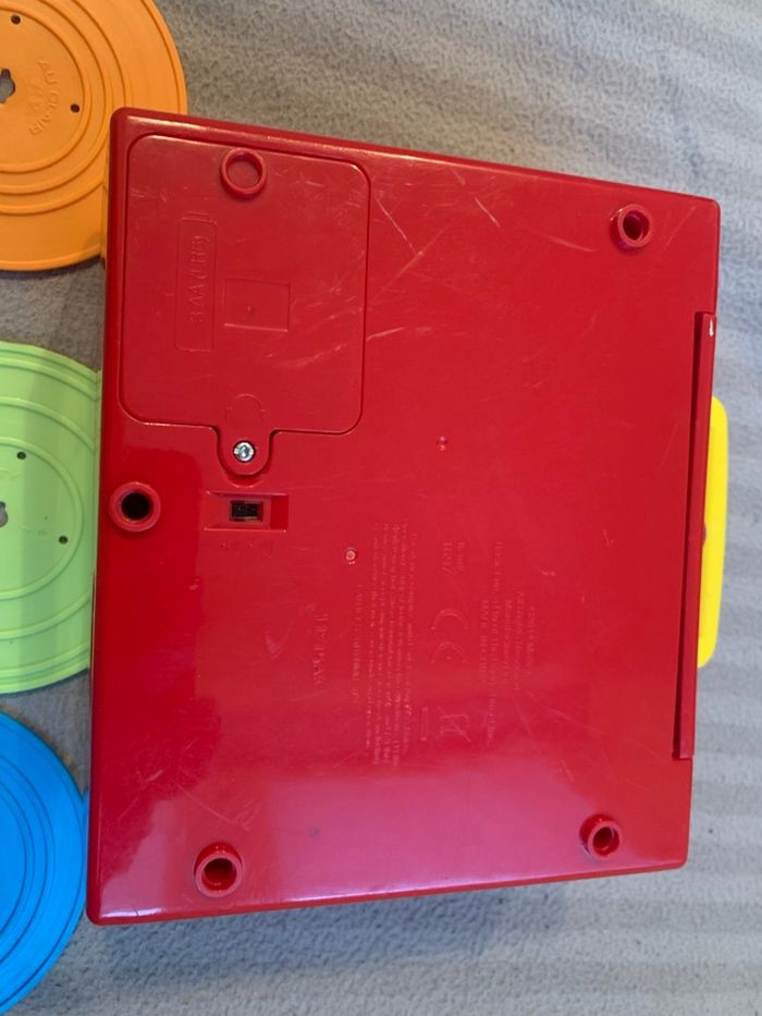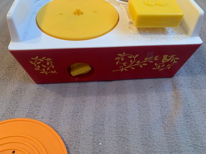 Tourne disque Fisher Price Vintage en bon état, quelques traces d’usures. Il fonctionne parfaitement. Je possède 3 disques seulement. Il y a Humpty Dumpty, Jack ans Jill, Twinkle Twinkle Little Star, Au clair de la lune, Children’s Marching Song, Camptown races.