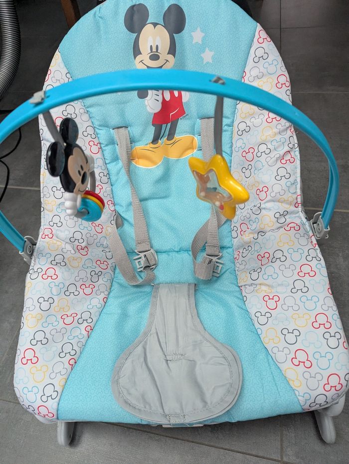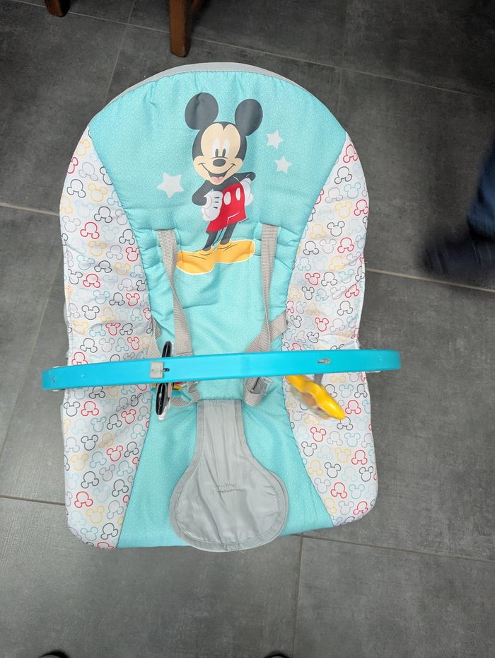 Avec la Balancelle, vous pouvez bercer Bébé pendant qu'il joue avec l'arc d'activité en attrapant et tournant les deux jouets Mickey Mouse. Il peut facilement passer du mode balancelle au mode transat.