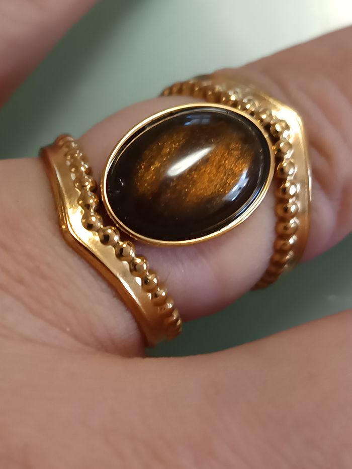 Bague ajustable oeil de tigre tendance - photo numéro 1
