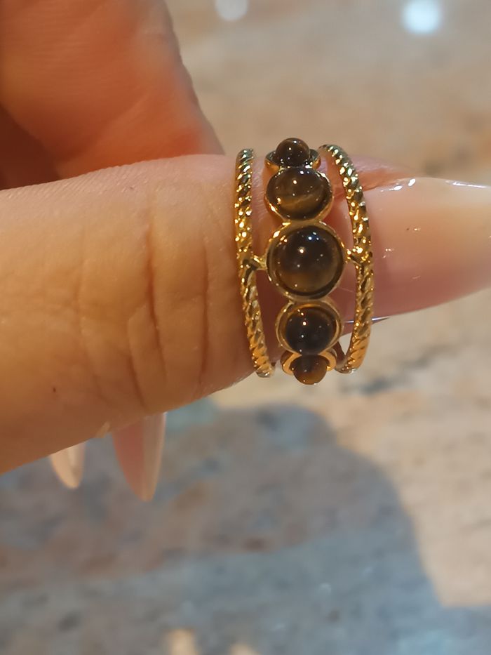 Bague ajustable oeil de tigre acier inoxydable tendance