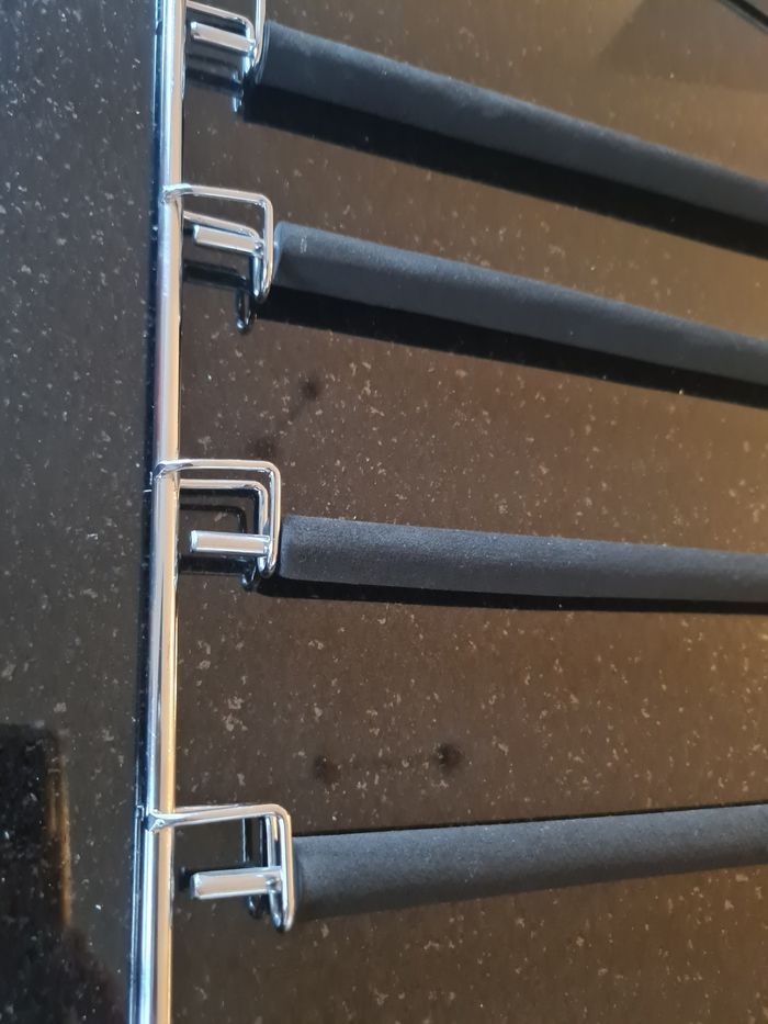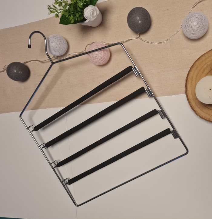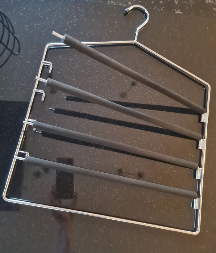 > Il permet de suspendre écharpes, pantalons ou autres sur 4 barres amovibles protégées par mousse.