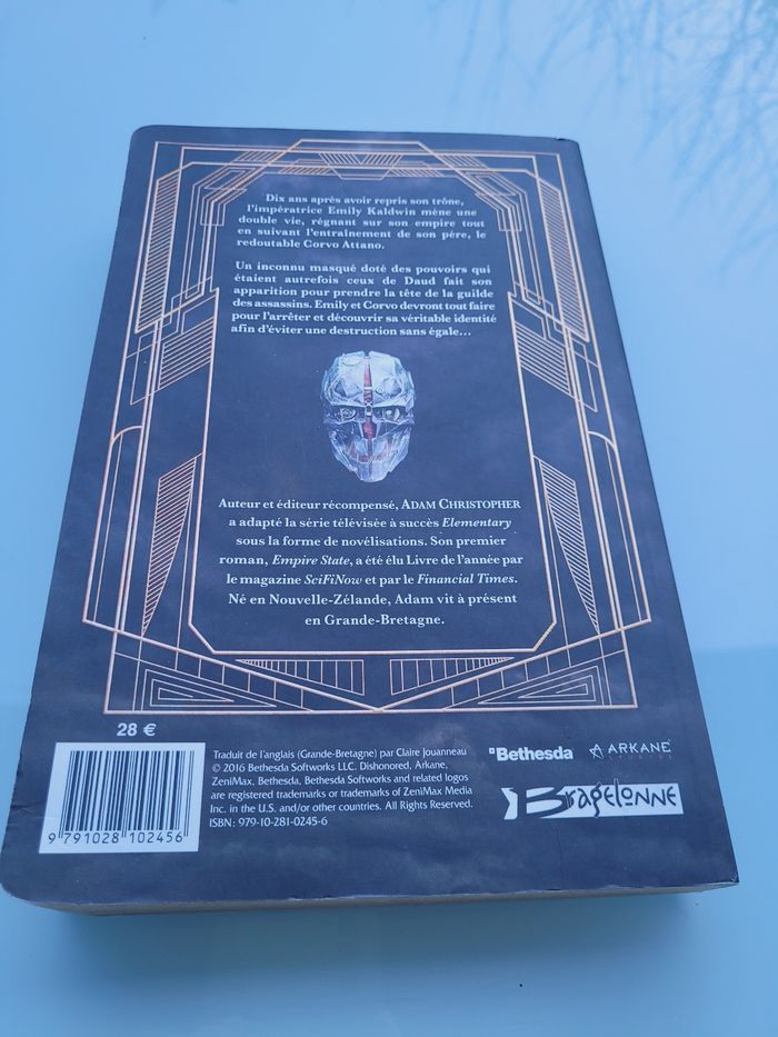 DISHONERED L'HOMME CORRODÉ Dix ans après avoir repris son trône, l'impératrice Emily Kaldwin mène une double vie, régnant sur son empire tout en suivant l'entraînement de son père, le redoutable Corvo Attano. Un inconnu masqué doté des pouvoirs qui étaient autrefois ceux de Daud fait son apparition pour prendre la tête de la guilde des assassins. Emily et Corvo devront tout faire pour l'arrêter et découvrir sa véritable identité afin d'éviter une destruction sans égale... Un inconnu masqué doté des pouvoirs qui étaient autrefois ceux de Daud fait son apparition pour prendre la tête de la guilde des assassins. Emily et Corvo devront tout faire pour l'arrêter et découvrir sa véritable identité afin d'éviter une destruction sans égale... En bon état, jolies tranches dorées Prix neuf : 28€ Mes autres livres ados : #livreadomooglou