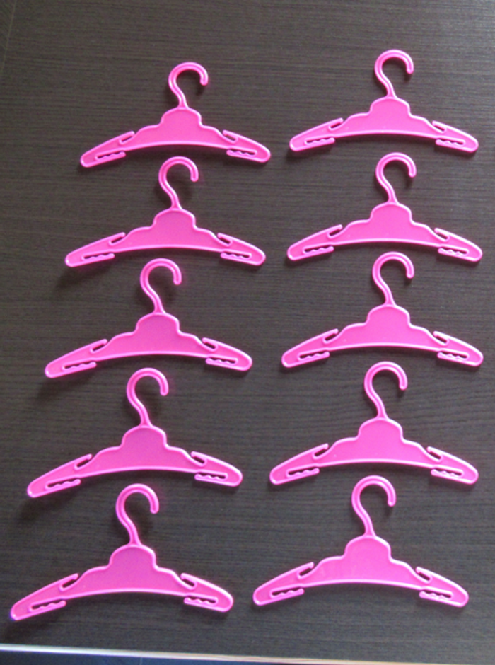 10 cintres / porte manteau roses pour vêtement de poupée neufs