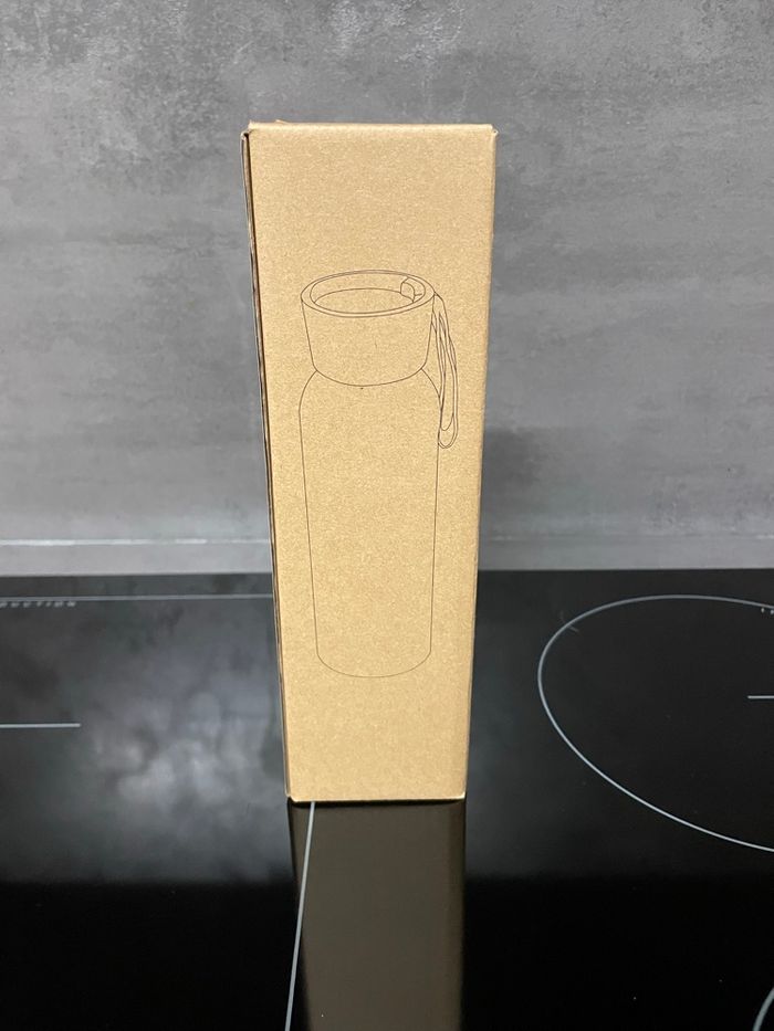 Gourde en verre de 500 ml avec dragonne Neuve jamais utilisée Gourde en verre avec bouchon en PS avec dragonne d'une capacité de 500 ml dans une boîte kraft. Taille du produit: 230 mm J’ai plusieurs gourdes disponibles