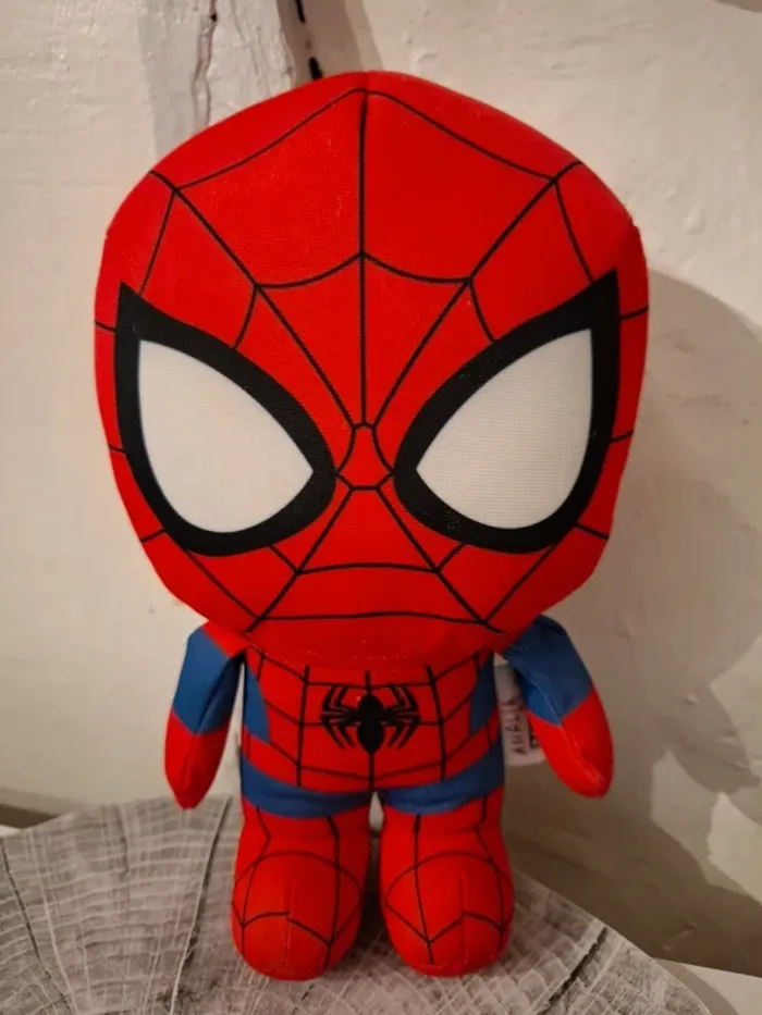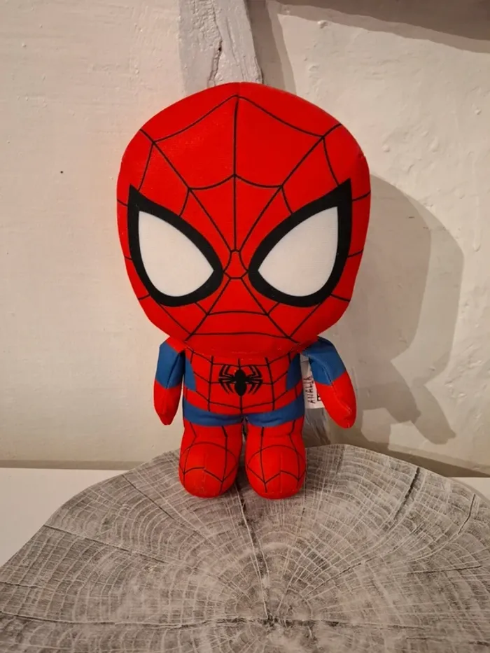 Peluche sonore Spider-Man, émet des sons de lancement de toiles lorsque l'on appuie sur son torse