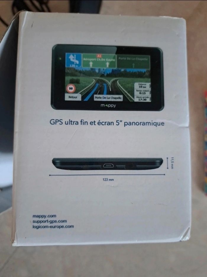 Je vends ce GPS Mappy Ulti, un appareil de navigation portable avec un écran panoramique de 5 pouces.