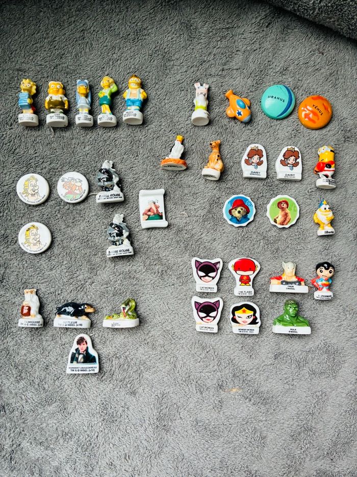 Différents lots de fèves pour galette * 2012 : les simpsons : Lisa, Terri, Uter, Edna, Nelson : 3€ * 2018/2020/2023 : Astérix : madame Mim, Abraracourcix, barbe rouge : 2€ * les animaux fantastiques : Demiguise, Dragonneau, Niffleur, Magini : 2€ * Marvel : Catwoman, Flash, Hulk, Wonder Woman, Thor, Superman : 3€ * Divers : Paddington 2018, Merlin, Droppy, Scooby Doo, Daisy (mario), Lapin Cretin, Les Minions, avion, planètes Uranus et Vénus : 4€ Vente possible par thématique (prix indiqué) ou prix sur l’annonce pour le lot entier Envoi hyper soigné #stefetjuju51jeux #stefetjuju51divers maison non fumeurs bien d’autres choses dans mon dressing de nouveaux articles très régulièrement nombreux # dans mon profil pour faciliter vos recherches merci pour votre visite et belle journée ☺️ #lot #feves #marvel #simpsons #asterix