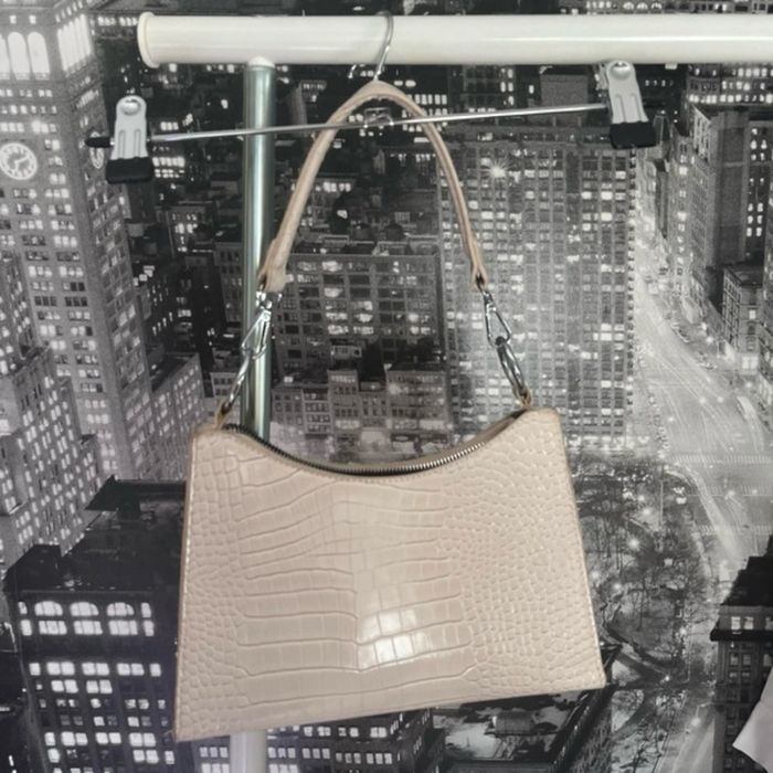 Sac à main beige effet cuir croco