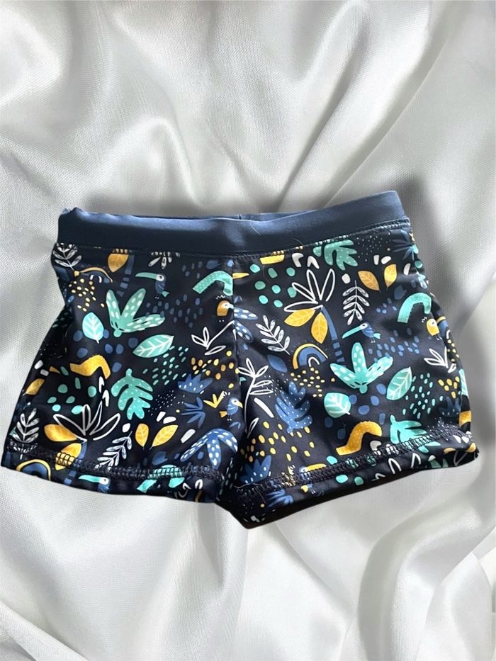 Joli short de bain bleu marine à motifs tropicaux colorés 🌿