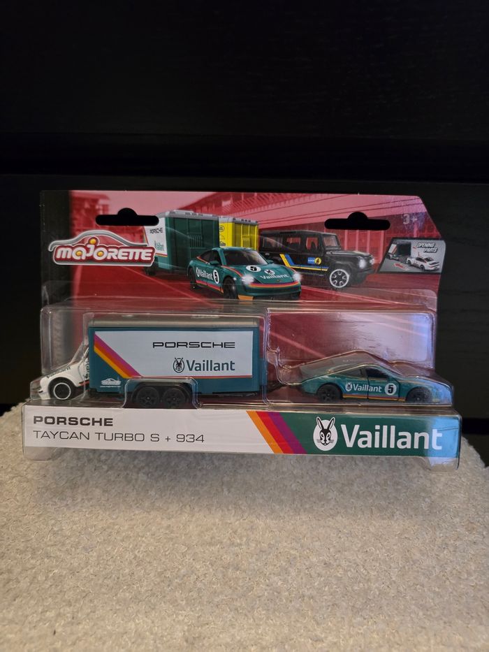 Porsche Taycan turbo s + 934 vert et blanc majorette