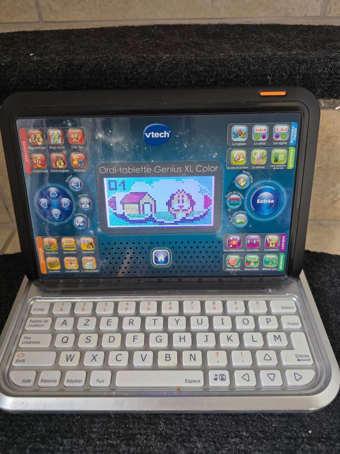 L'Ordi-tablette Genius XL color noir est le premier ordinateur-tablette parlant et musical des petits, votre enfant va pouvoir apprendre en s'amusant et en imitant les grands pendant des heures de jeu.