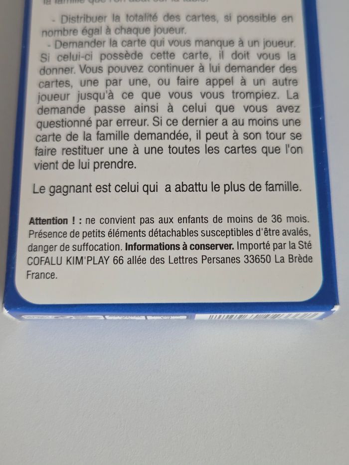 Ce jeu de cartes classique est parfait pour des moments ludiques en famille ou entre amis. Idéal pour développer la mémoire et l'esprit de déduction chez les enfants.