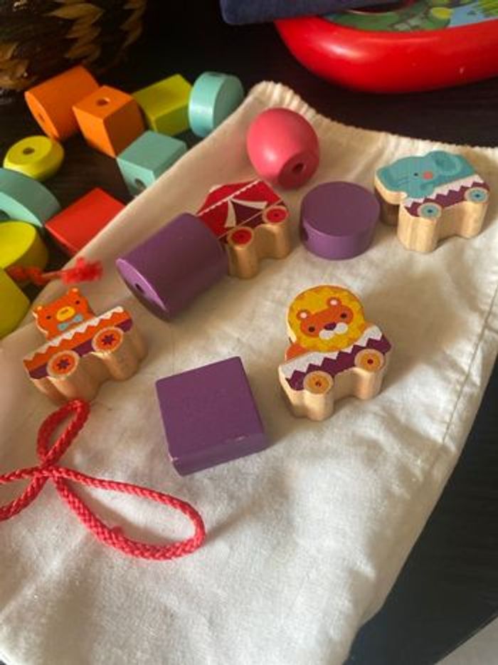 2 lots perles bois premier âge Janod et jura toys