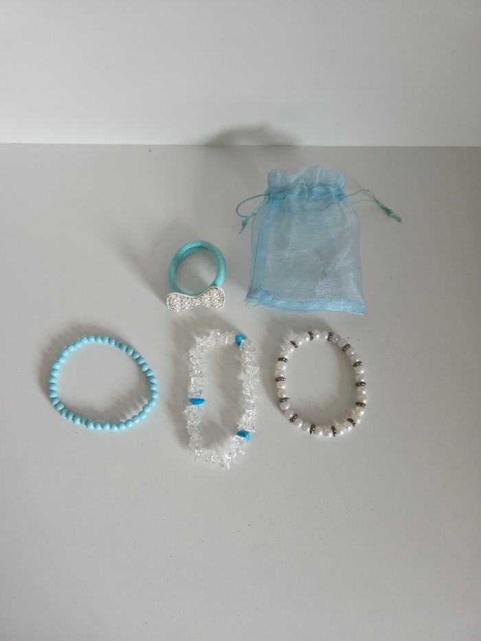 💎 Lot de 3 Bracelets et 1 Élastique à Cheveux Fantaisie pour Fille - Thème Bleu/Blanc - photo numéro 1