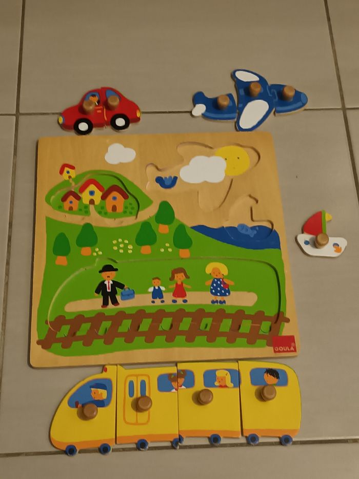 Puzzle éducatif en bois en bon état marque Goula. Il a été utilisé mais peu encore servir.