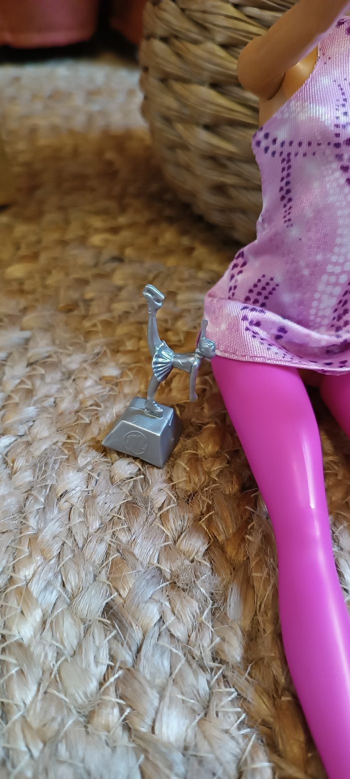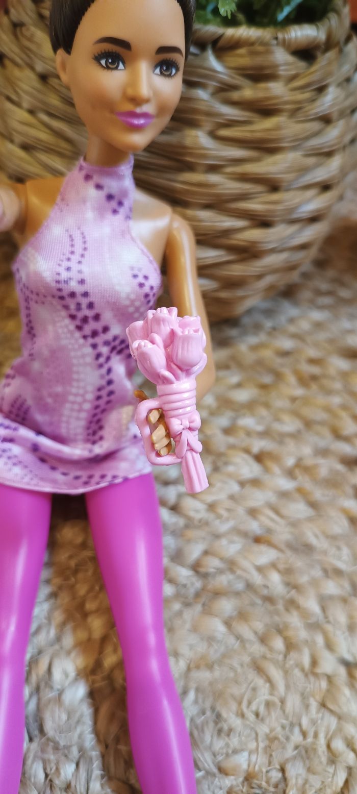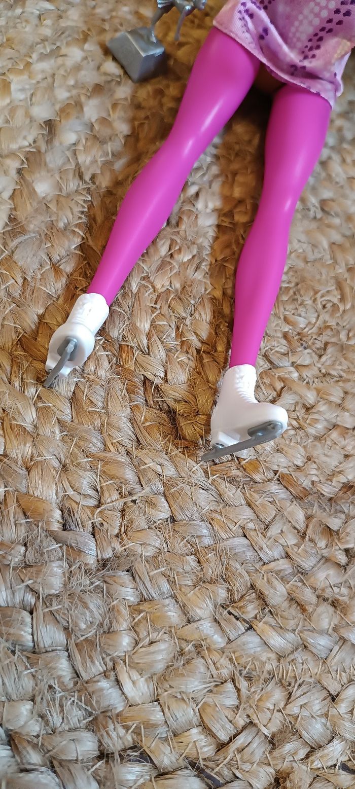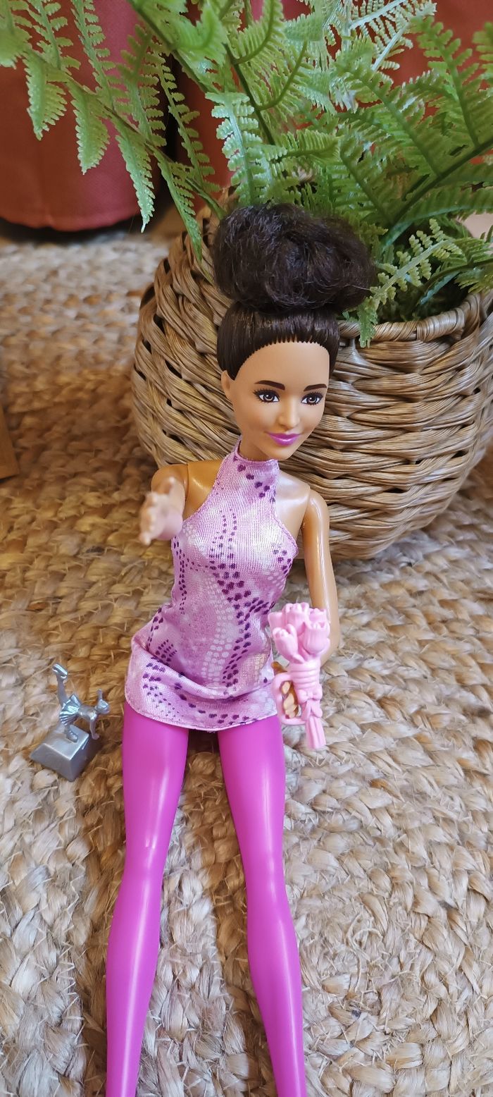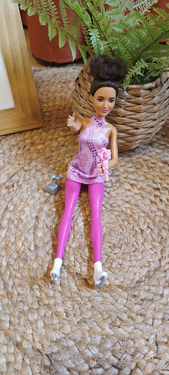 En très bon état. Barbie patineuse. Complet : 2 patins, 1 trophée, 1 bouquet de fleurs.