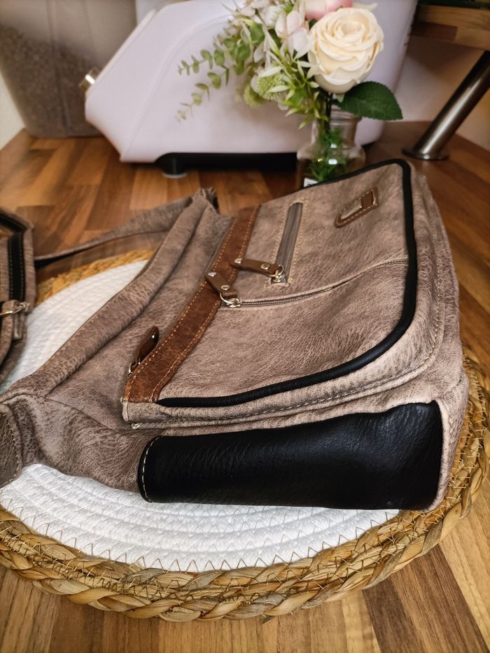 Sac à main à bandoulière multi poches marron noir Phoenix