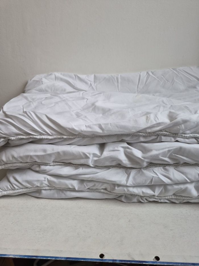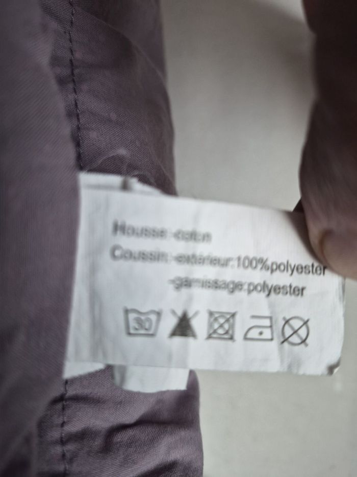 Comme sur lesphotos Housse 100% coton coussins : 100% polyester 3 coussins avec housse avec fermetures éclair indépendante. Lavé Prix neuf : 70€