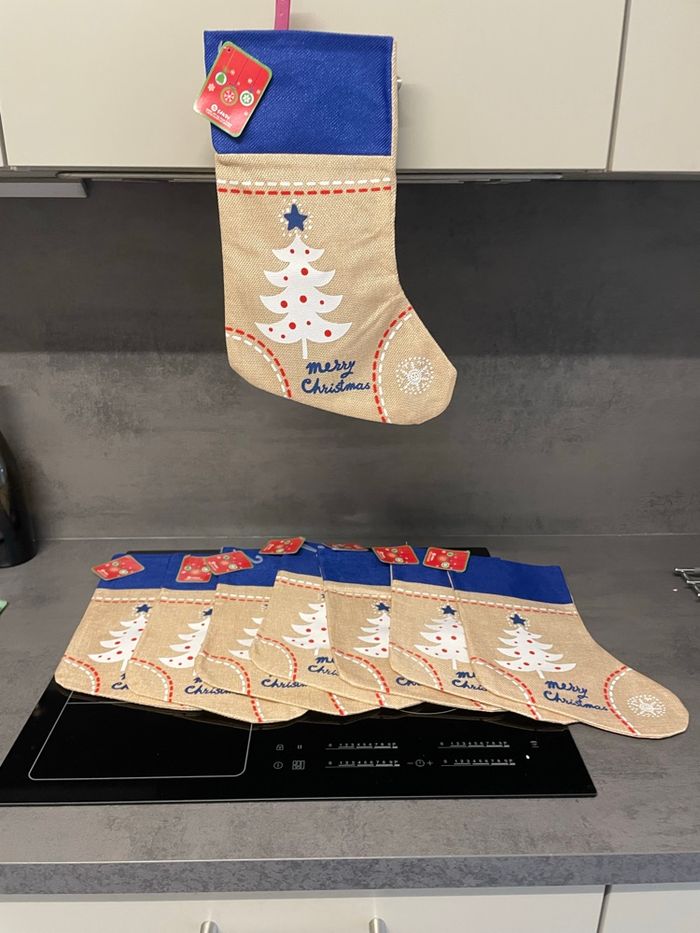 Botte de Noël neuve Style lin Environ 36cm Vendue à l unité 2€50 Le lot de 4 : 8€ Le lot de 8 :15€