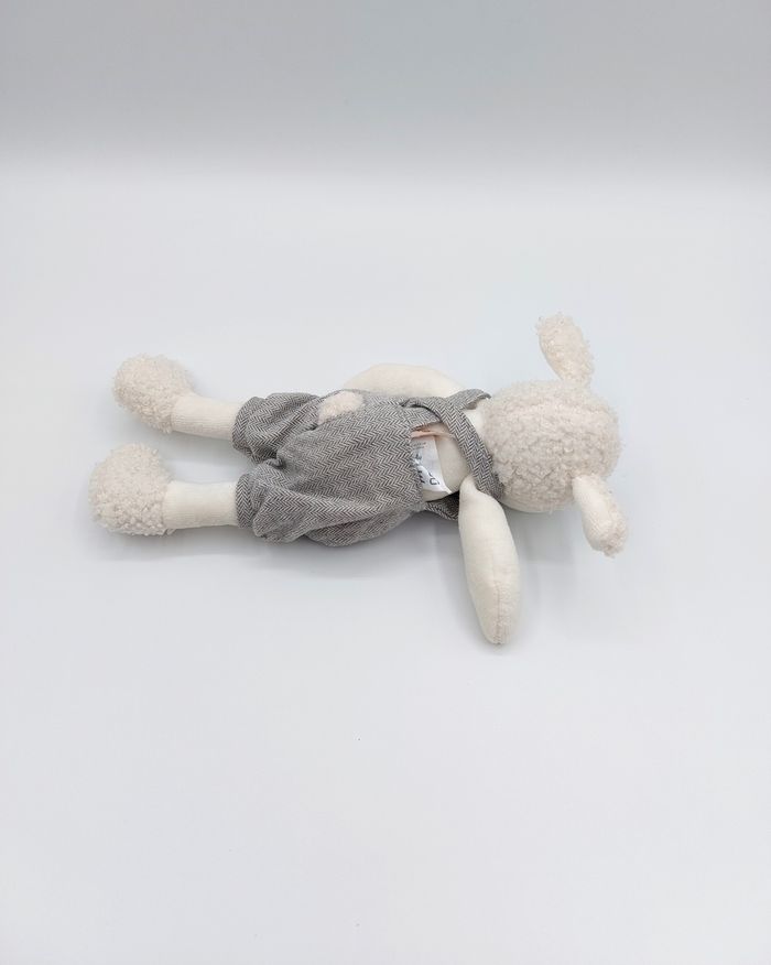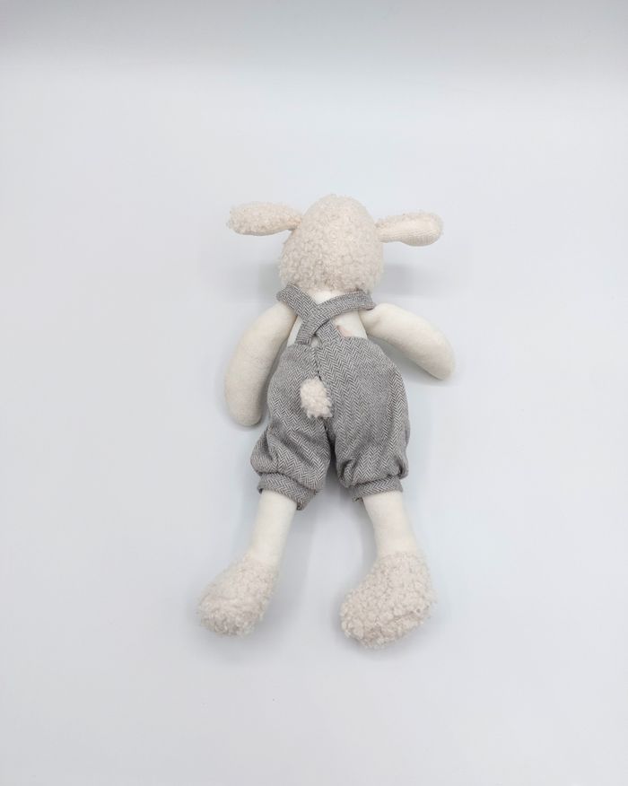 Doudou peluche mouton blanc écru MOULIN ROTY la grande famille salopette gris 22 cm - photo numéro 4