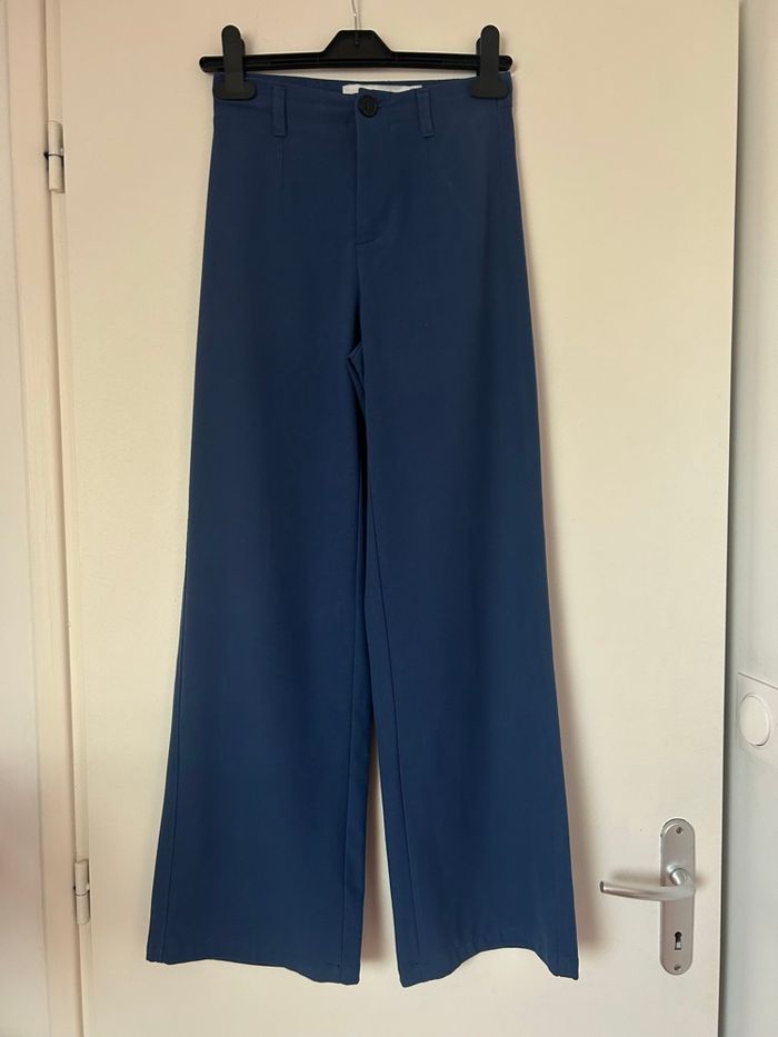 Pantalon tailleur bleu bershka - coupe large taille haute T34 - photo numéro 1