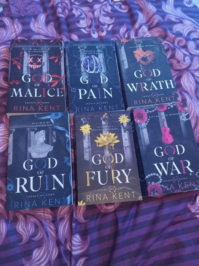 Je vends les 6 tomes de la saga Legacy of Gods de Rina Kent. Les tomes peuvent se lire indépendamment. Ils sont tous en très bon état. Ce sont des brochés, pas des reliés, et ils ont les couvertures originales.