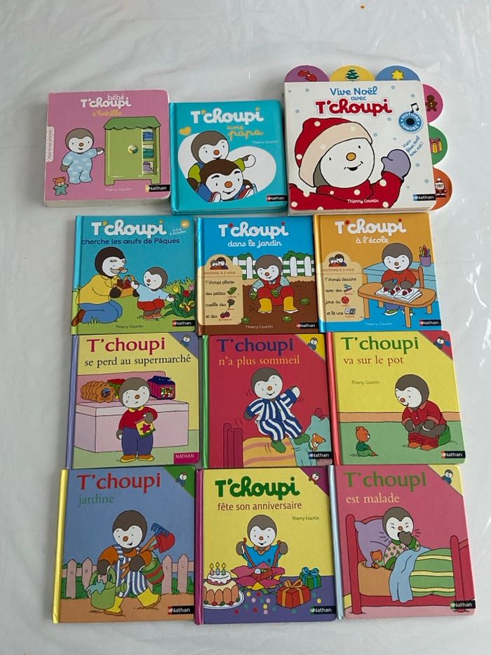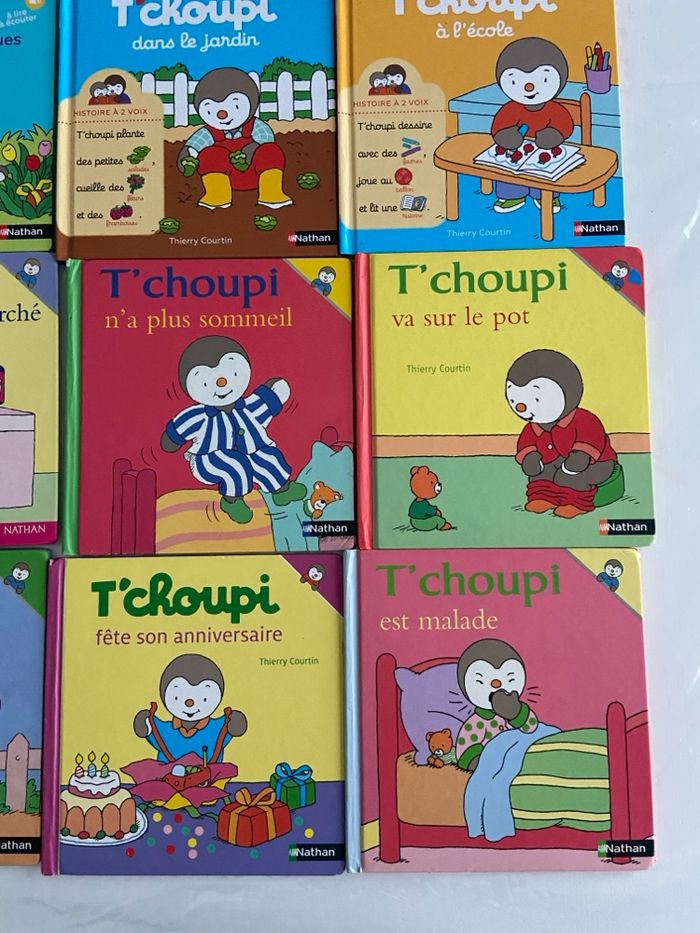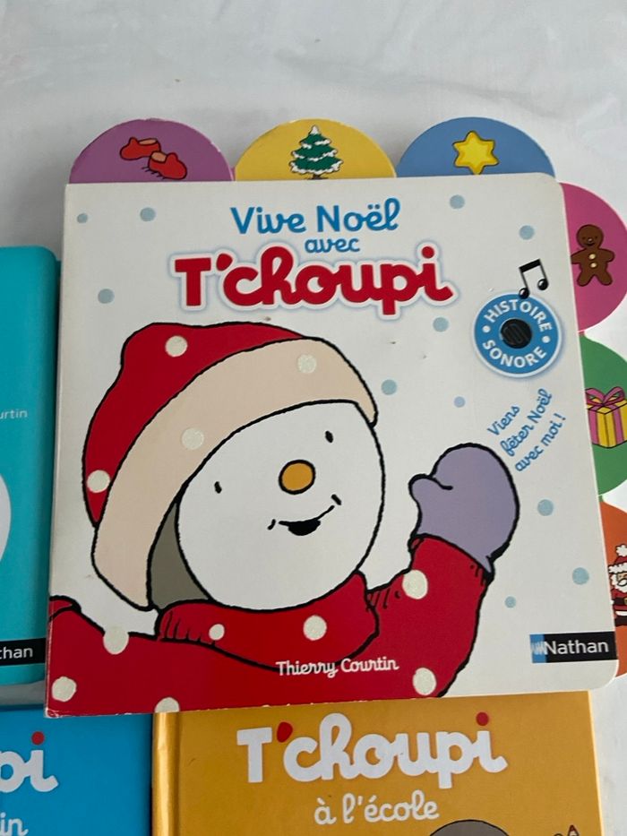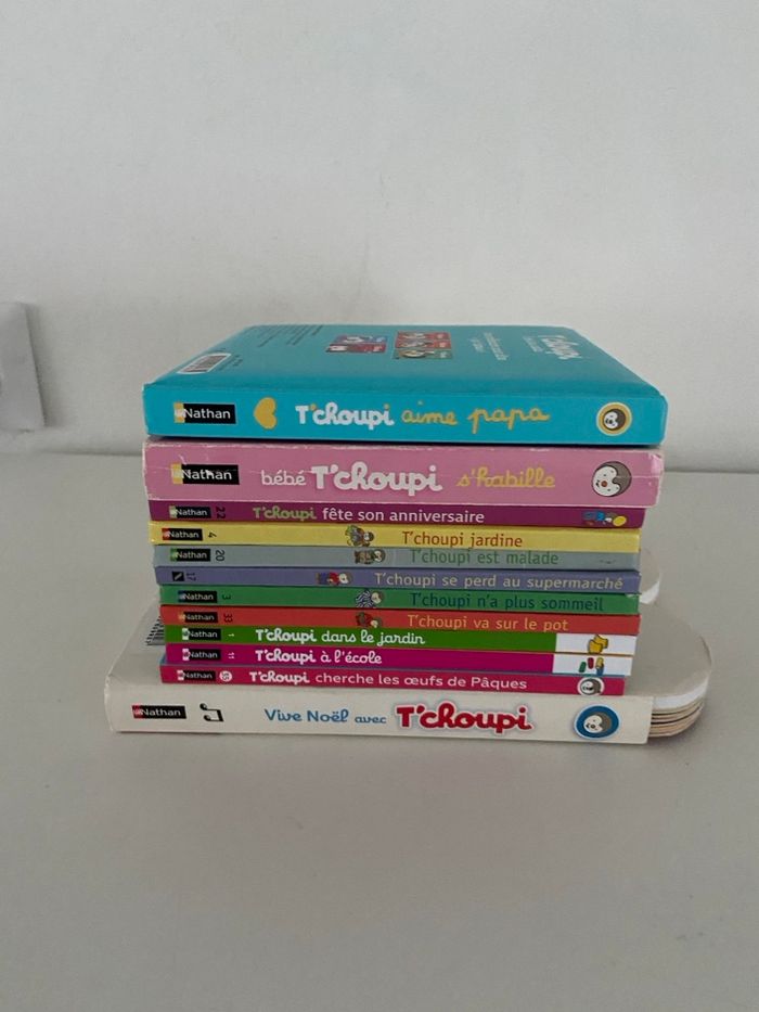 Je vends un super lot de livres T’choupi, parfait pour les tout-petits (dès 1 an). Ces livres accompagnent l’enfant dans les moments du quotidien (école, propreté, sommeil, fêtes, émotions…) avec des histoires simples et rassurantes 💛