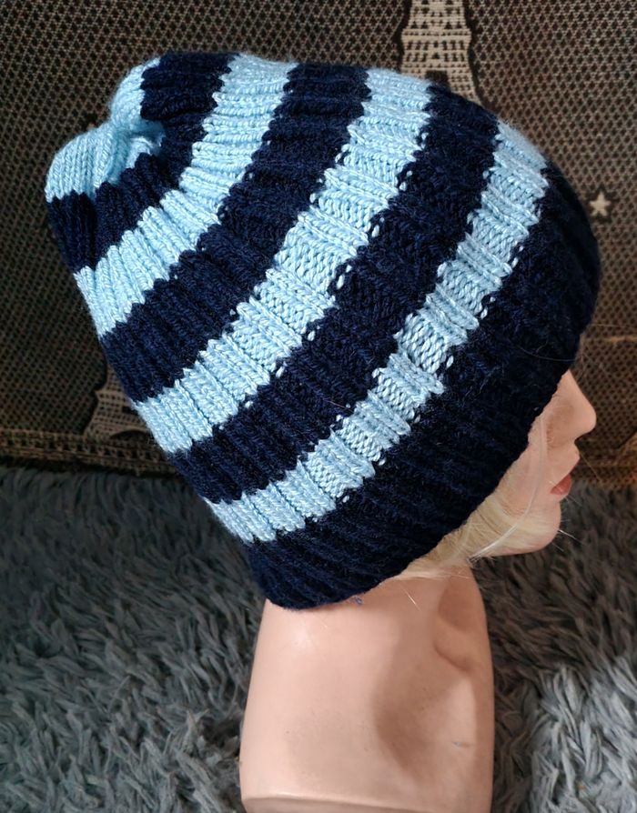 Ensemble bonnet + écharpe à rayures marine et bleu clair - photo numéro 6