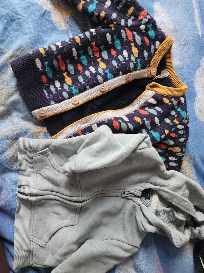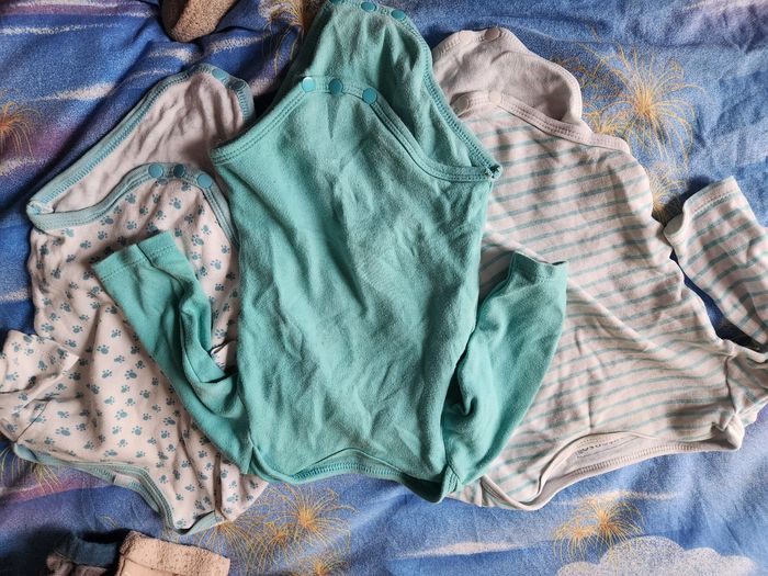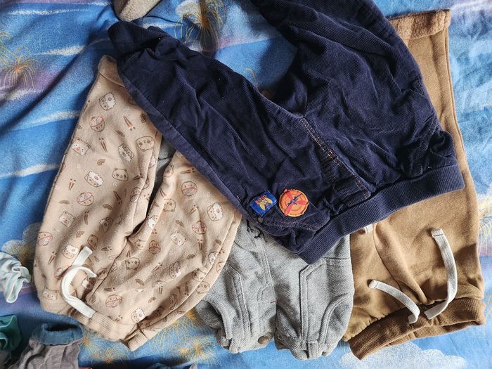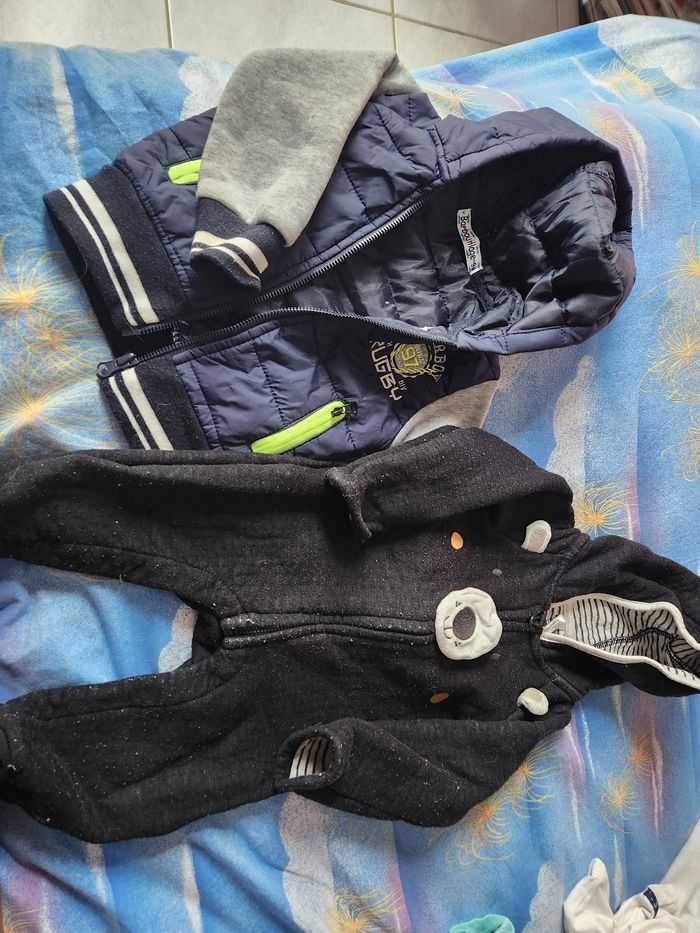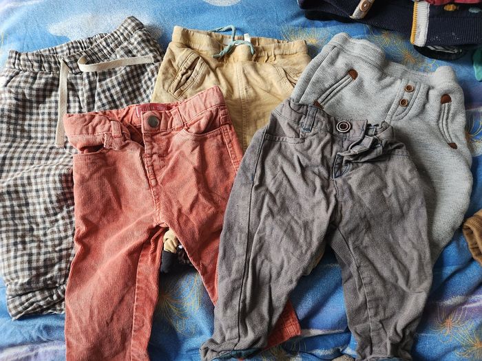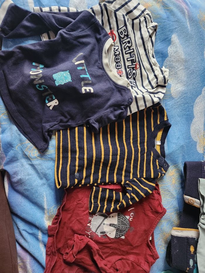 Vends lot bébé garçon 9 mois 25 pcs 1 salopette 3 bodies 1 pyjama 2 gilet 4 t-shirt manches longues 9 pantalons 1 veste ......