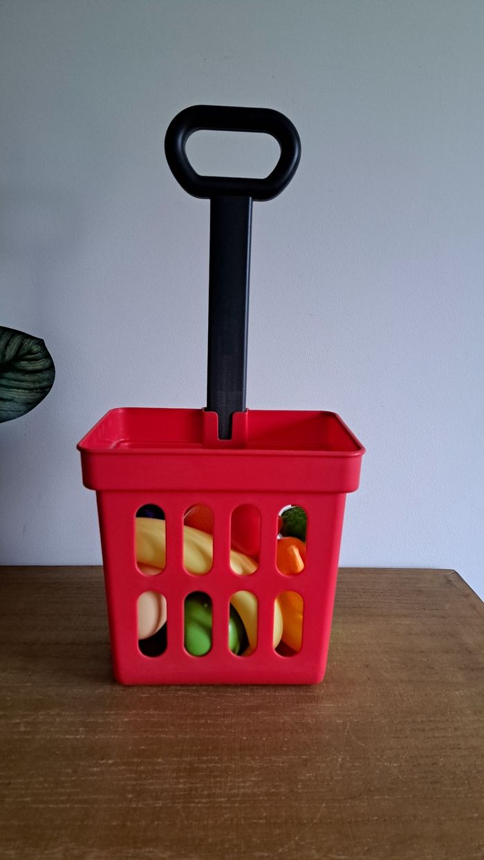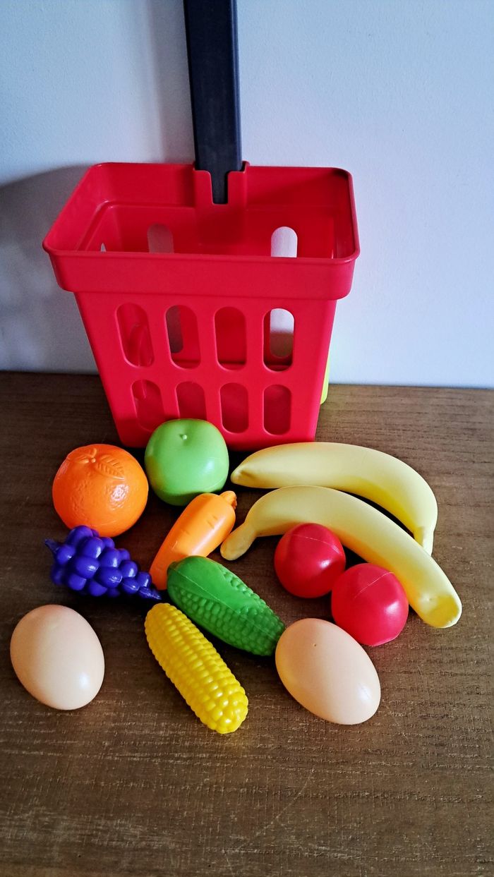 chariot de course avec ses fruits et légumes article en état impeccable de chez jouet club 1 chariot et 12 fruits et légumes le tout en plastique je reste à votre disposition pour toute information complémentaire 😃