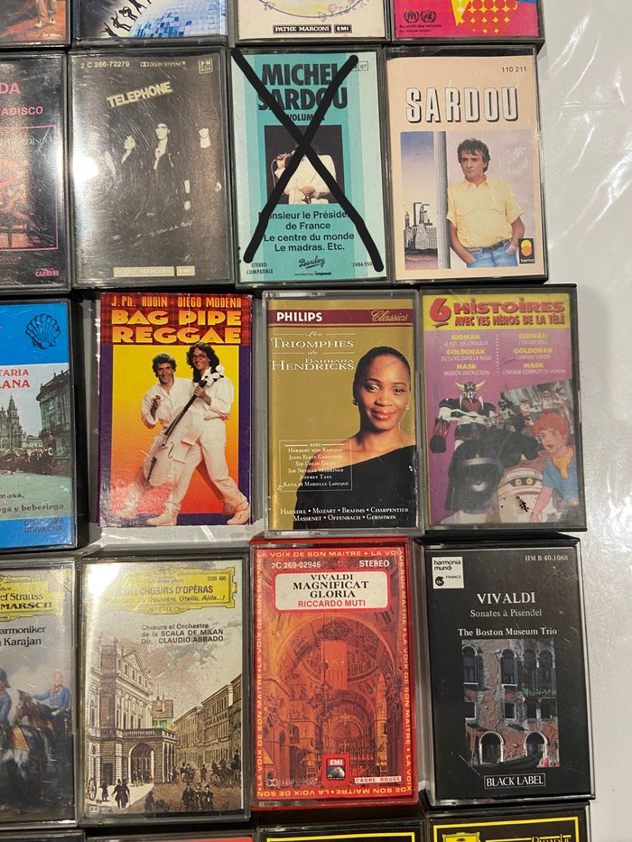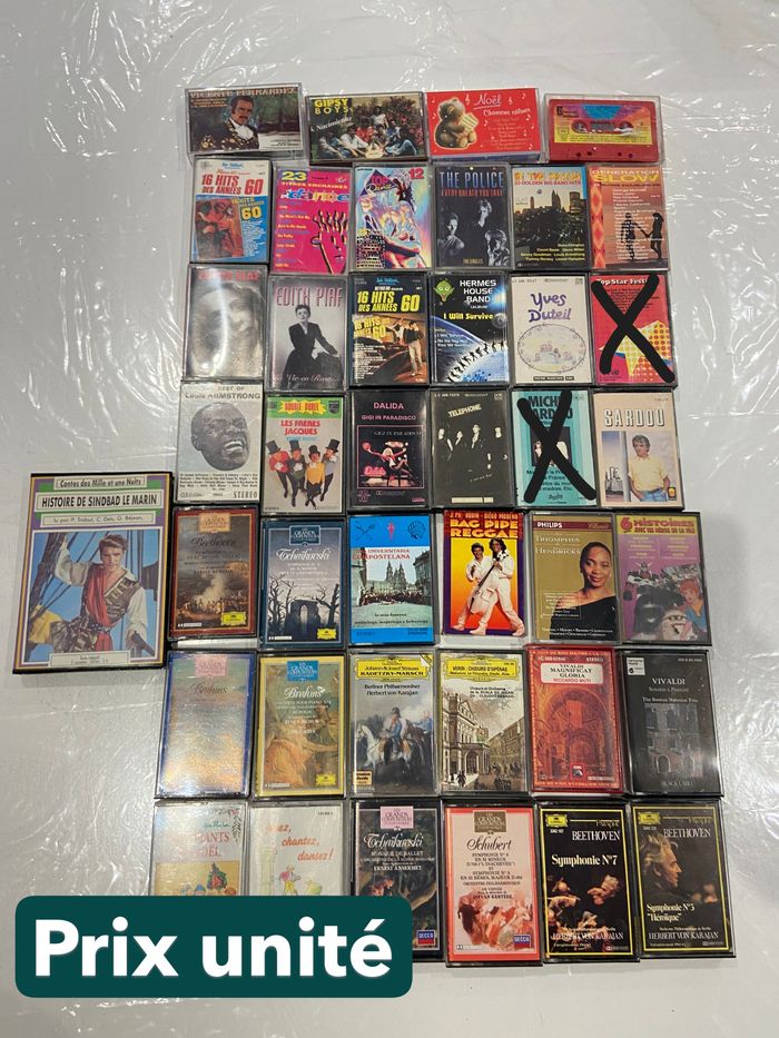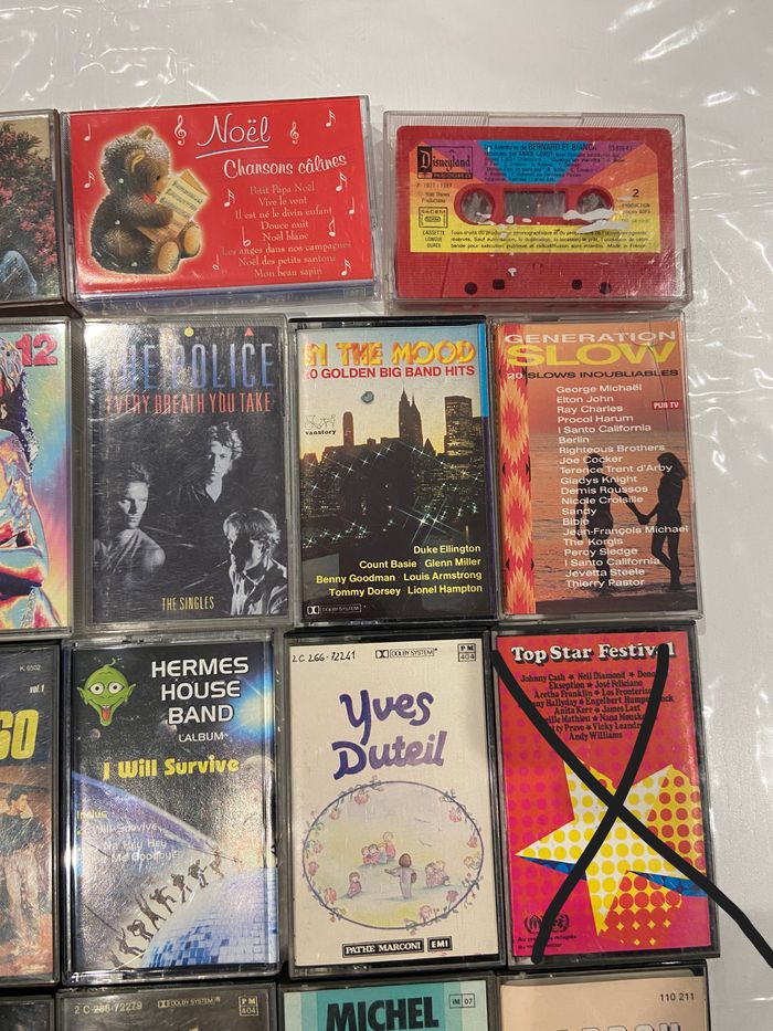 Je vends une très belle collection de cassettes audio en excellent état, idéale pour les collectionneurs, passionnés de vintage ou amateurs de sons authentiques. 4€ la cassette, prix dégressif si vous en prenez plusieurs.