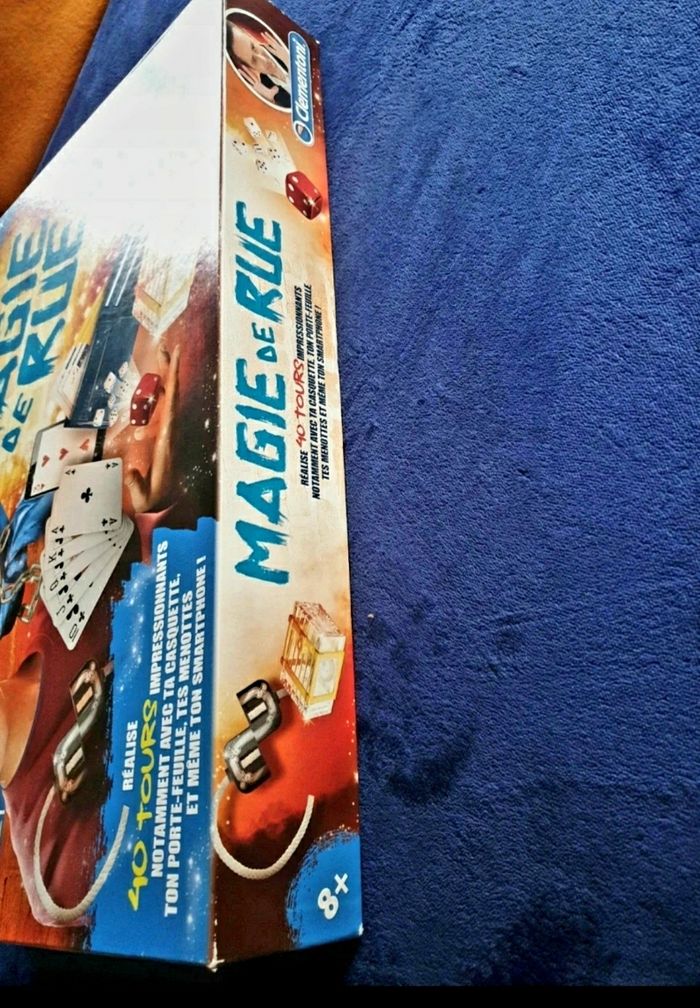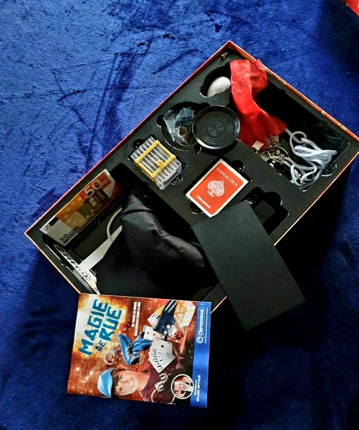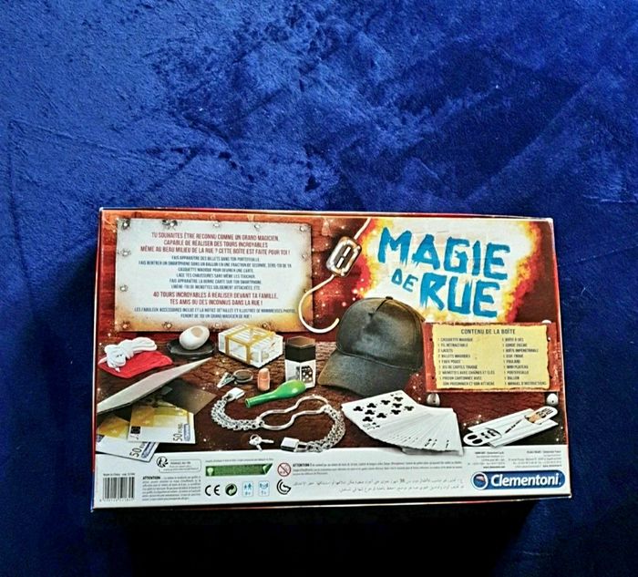 Boite de jeu. Magie de rue. 40 tours de magie avec de nombreux accessoires et même un smartphone. Complet. Comme neuf car jamais utilisé. Juste déballé. Parfait etat