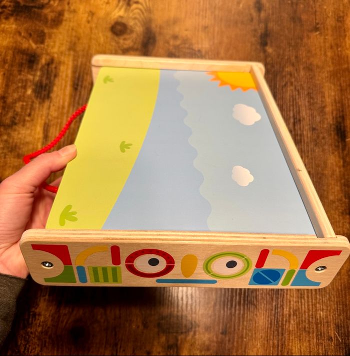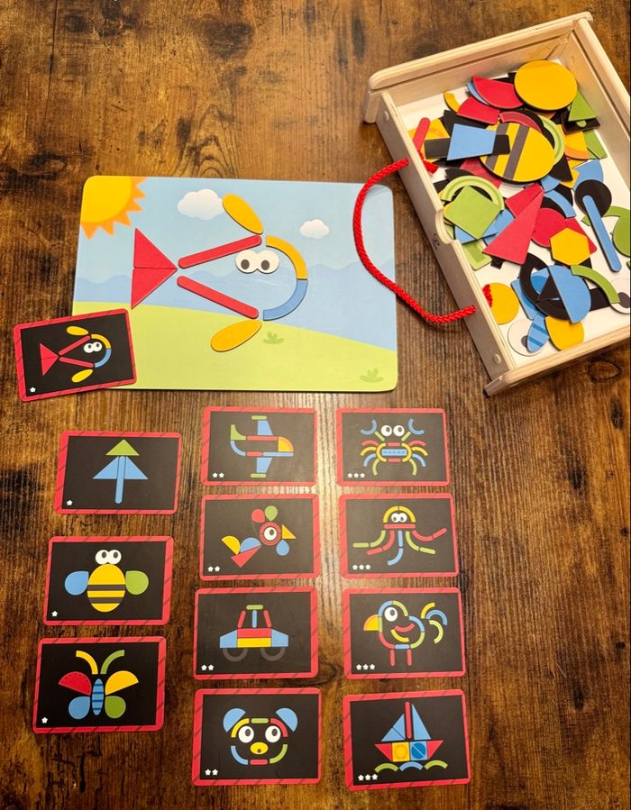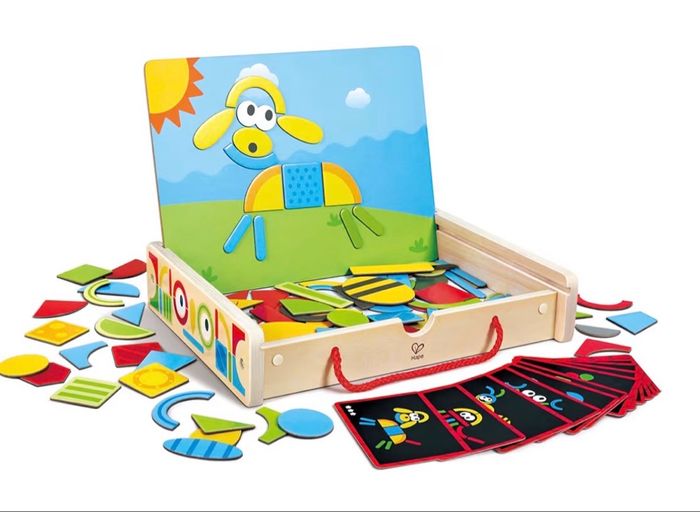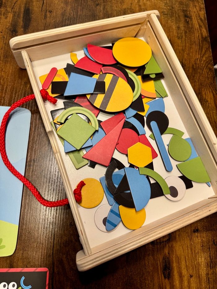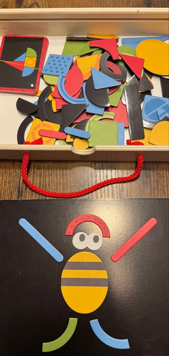 Jeu éducatif en SUPERBE ÉTAT 👌 Marque HAPE Valise en bois avec Formes magnétiques et 12 cartes d’inspiration soit 24 motifs. Trois niveaux de difficultés, de sorte que les créations des enfants peuvent devenir plus complexes avec l'âge. Idéal pour encourager la pensée logique et enseigner les bases de la géométrie. Léger, facile à transporter. ‼️ Envoi rapide par mondial relais ou relais colis uniquement ! 🛍️ N'hésitez pas à aller dans mon dressing afin de faire des lots, il y a encore de nombreux articles !