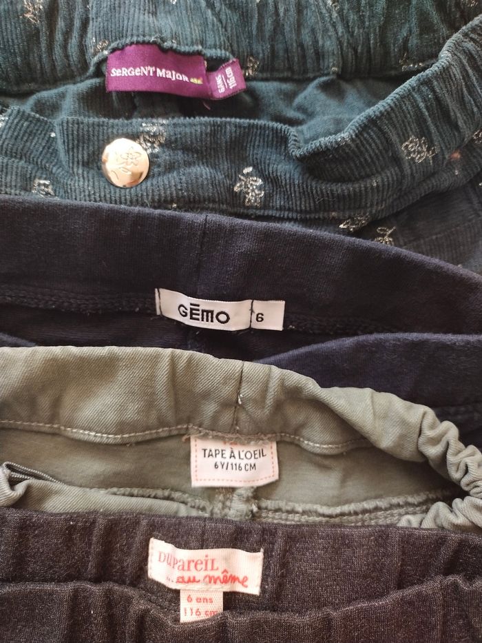 Lot de quatre pantalons, taille 6 ans en très bon état général :