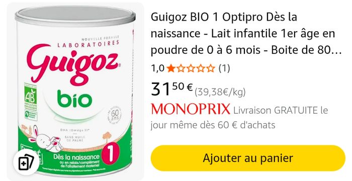 Nous vendons les boîtes de lait infantile que nous avons achetées en trop grande quantité. Notre enfant étant passé au 2e âge.