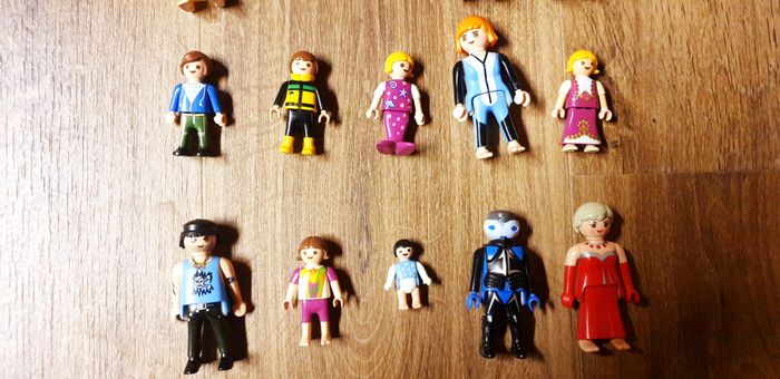 Régulièrement en ligne, des Playmobil vintage (klicky, geobra, system), parfois neufs dans une boîte encore scellée mais plus souvent d'occasion. Des personnages et accessoires, en lot précis ou en vrac, issus de différents univers : family fun, city life, city action, history, pirates, wildlife, country, belle époque, victorienne, western, indiens... Sur les thèmes des égyptiens ou des romains (pyramide, galère, sphinx), des secouristes (pompiers, policier, sauveteurs, commissariat, clinique, médecin, hôpital, vétérinaire...), Avec différents types de véhicules : camion, grue, voiture, bateau, moto, vélo, charrette, diligence, quad, avion, hélicoptère, tracteur, pelleteuse, camion poubelle, bus. Des animaux dans les zoos, parcs, aquariums ou cirque avec cages, dompteurs, roulotte. Mais aussi le thème de l'école, du camping, des chevaux (ou poney), des dinosaures, des chevaliers...