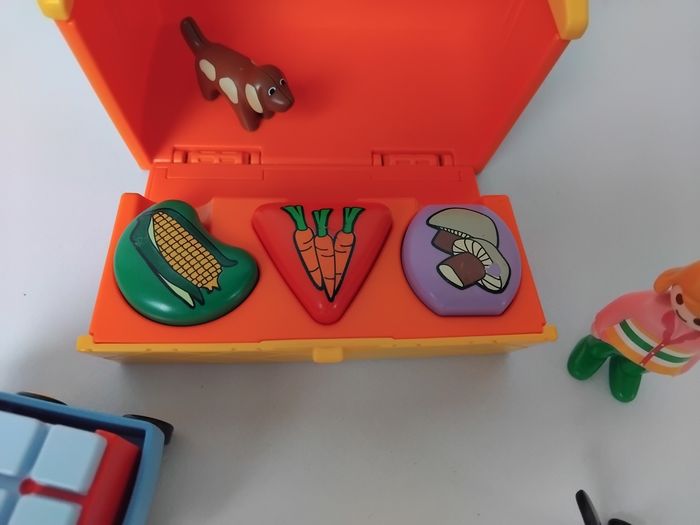 🍓🌽 Vends lot de Jouets Playmobil 123 1er âge Junior : Marché des Produits de la Ferme, avec Accessoires, Bonhommes et Animaux.
