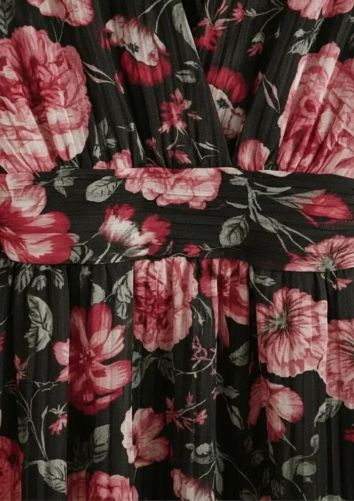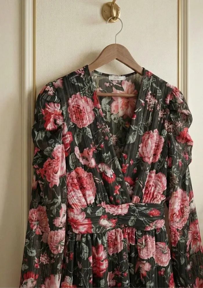 Robe courte rouge volantée décolleté v noué imprimé fleuri - Taille S