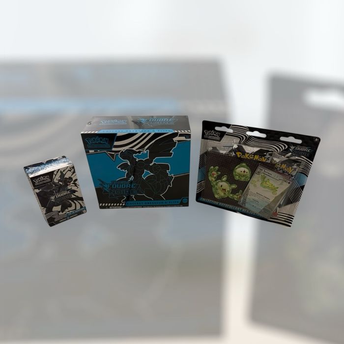 Je propose ces trois produits en un seul lot pour les fans de Pokémon qui souhaitent profiter pleinement de l’extension “Foudre Noire”. Tous les articles sont neufs et sous blister, directement sortis de boutique. Aucune remise en main propre, afin de garantir une expédition rapide et sécurisée.