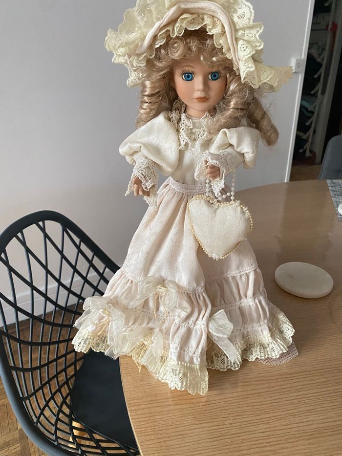 Vends poupée qui fait de la musique très peu servi plus en décoration mais peu allumée