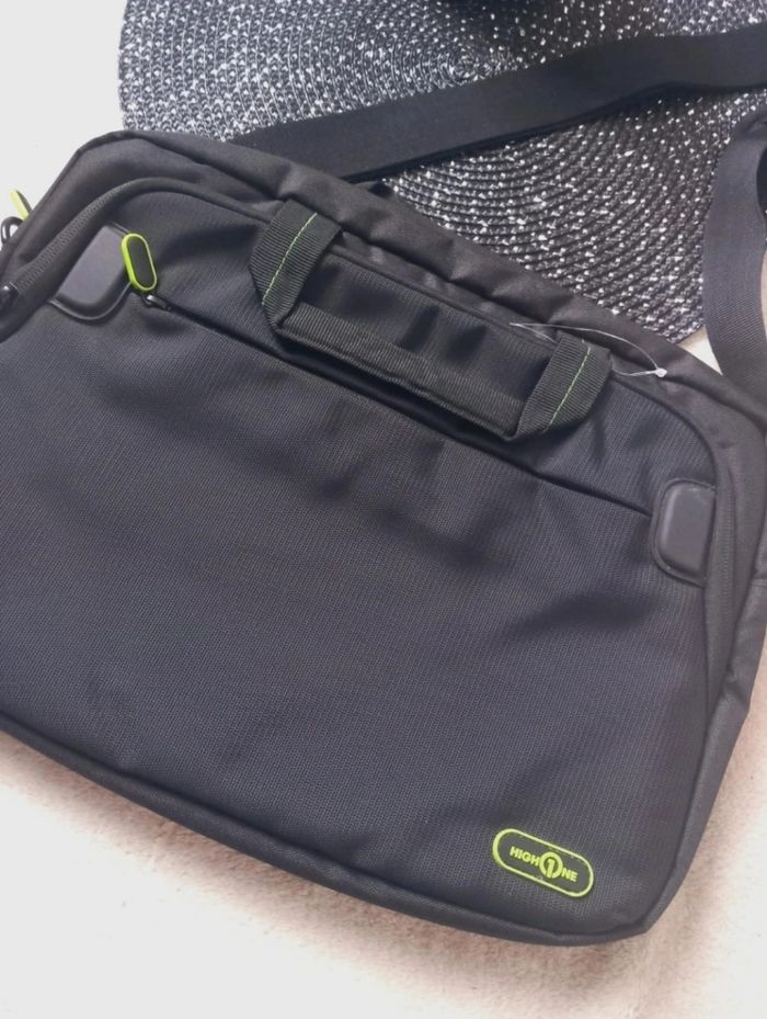 Sacoche noire HIGH ONE, parfaite pour transporter un ordinateur portable jusqu’à 13". Modèle pratique et léger, avec bandoulière ajustable et poignée de transport renforcée. Plusieurs compartiments pour ranger accessoires, chargeur ou documents. 🔒 Fermetures zippées vert fluo – design sobre et moderne. 📏 Dimensions : H 28 × L 38 × P 5 cm 💻 Compatibilité : Ordinateur 13 pouces 🖤 Couleur : Noir avec détails vert fluo ✨ État : Neuf 📦 Réf : w999 #highone #sacordinateur #sacochepc #informatique #bureautique #accessoirespc #neuf #C2 #transportordinateur #tech #accessoiresfamilly2017