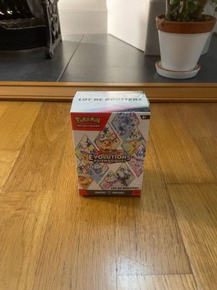 Lot 6 Bundles évolution prismatique ev8.5 Pokémon / 50€ unité donc 300€ au total VENDUS EN LOT DE 6 Parfaitement scellés Facture disponible REMISE EN MAIN PROPRE POSSIBLE SUR PARIS (et 91) PLUSIEURS ARTICLES POKÉMON DISPONIBLES (demi display ME01, upc mega dracaufeu) Chaque envoi est filmé pour éviter toute arnaque