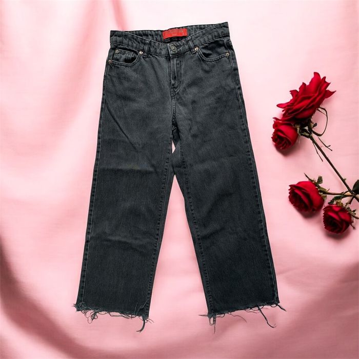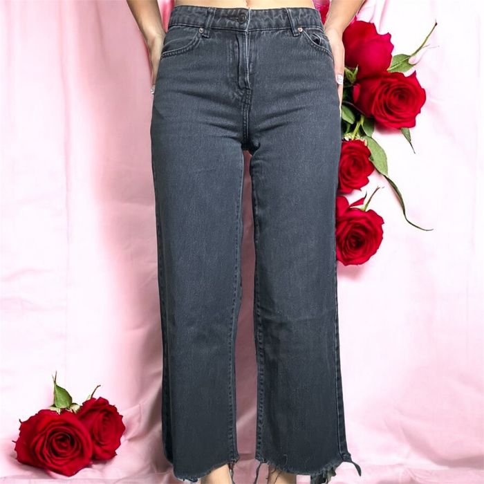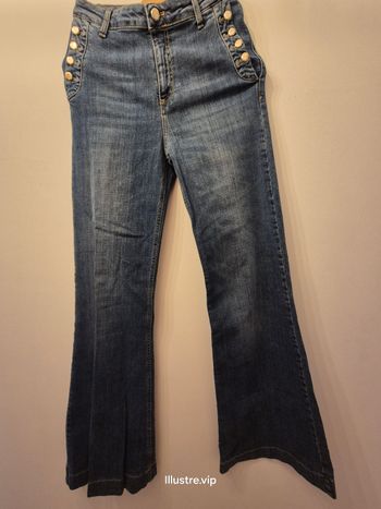 🔍 Description : Jean wide leg avec frange de tissu en bas, il ne va pas jusqu'au cheville.