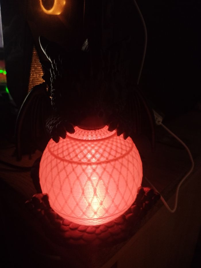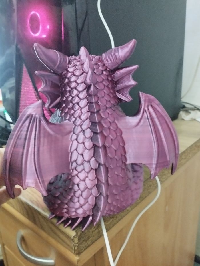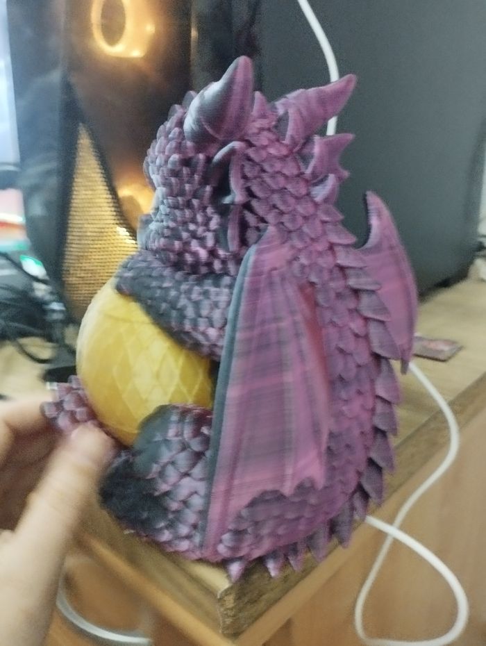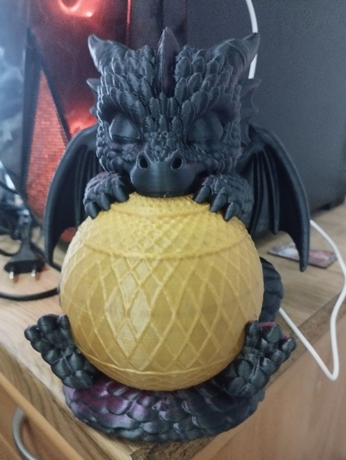 Magnifique Veilleuse bébé dragon de 20cm sur secteur USB lumière qui change de couleur automatiquement 2 jours d'impression a peut près 🤩 veilleuse unique en sont genre avec sa couleur violet et noir pour le dragon et or pour la boule lumineuse 🤩🤩 au prix de 30€